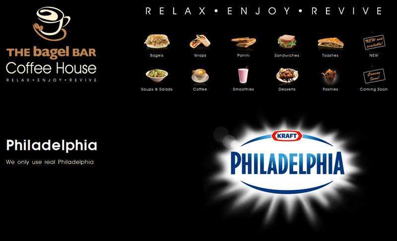 Here the designer goes for a color palette that is pulled from coffee (that is to say, it implies a mix of black and brown shades that is skillfully diluted with a contrasting white tone). As befits all websites dedicated to bars/restaurants, it also includes images of delicious snacks and coffee drinks that aim to increase your appetite.